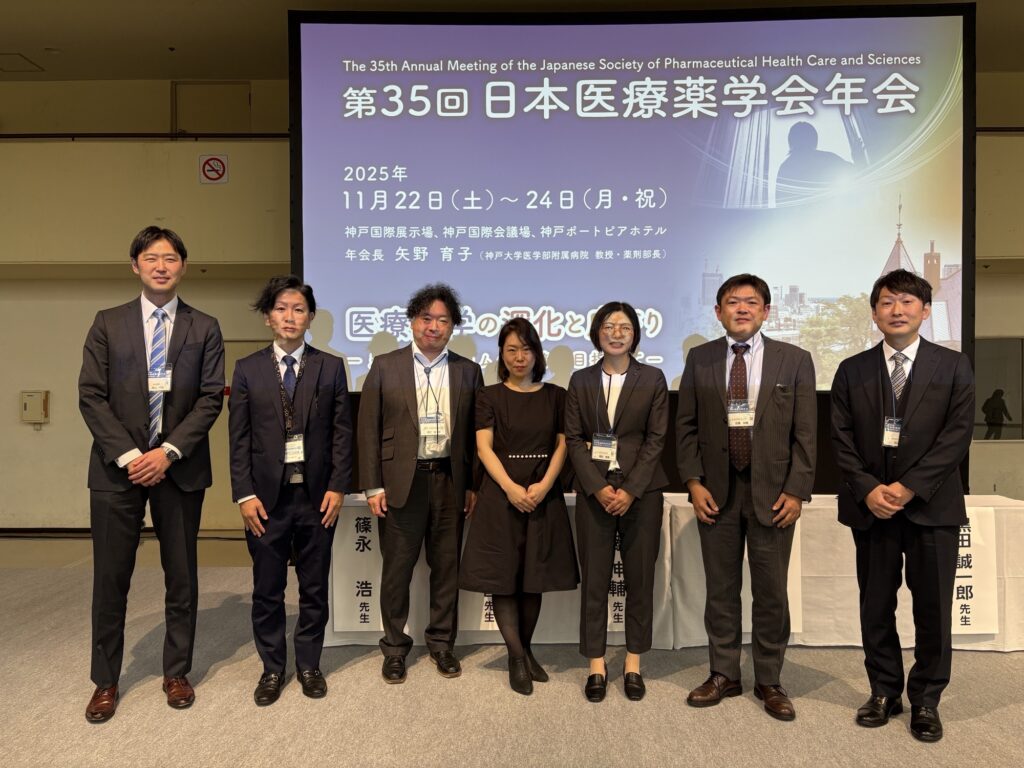 2025年11月22日(土)〜24日(月・祝)に神戸国際展示場ならびに神戸国際会議場、神戸ポートピアホテルで開催された第35回日本医療薬学会年会において、近藤勝弘薬剤部長、和知野千春助教、野田雅人主査、脇田恵里主査、柴田を行いました。
